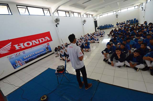 Dengan antusias ratusan siswa SMK Fadillah mengikuti kegiatan Wahana Berbagi Ilmu. Kegiatan ini dilakukan sehari penuh yang berisikan paparan teknologi injeksi motor Honda, safety riding dan kesehatan. “Kegiatan ini merupakan sarana membagi pengetahuan seluas mungkin kepada anak sekolah,” jelas Wiyarto Mulyono, Group Head of External Affairs Wahana Makmur Sejati.