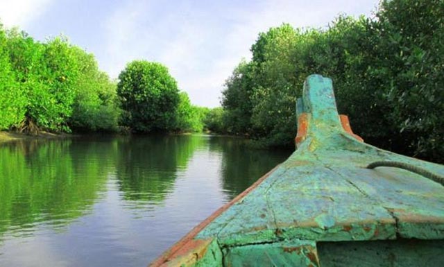Berjarak 70 kilometer atau sekitar 2 jam perjalanan dari pusat Kota Bekasi terhampar "sabuk" hutan mangrove sepanjang 17 kilometer. Di sini, cukup membayar Rp 70.000, bro/sis sudah bisa ikut tur menjelajahi hutan bakau dengan sampan dan menyantap ikan bakar.