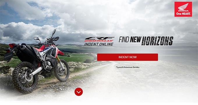 Nah, biar cepet kebagian AHM membuka layanan untuk inden terlebih dahulu, caranya mirip dengan inden All New Honda CBR250RR. Bro/sis cukup buka www.astra-honda.com/crf250rally/indent/ di smartphone atau browser komputer dan lengkapi semua persyaratannya, atau bisa juga langsung mengunjungi wing dealer Honda di kota bro/sis dan pihak dealer akan membanntu proses pendaftaran inden Honda CRF250 Rally.