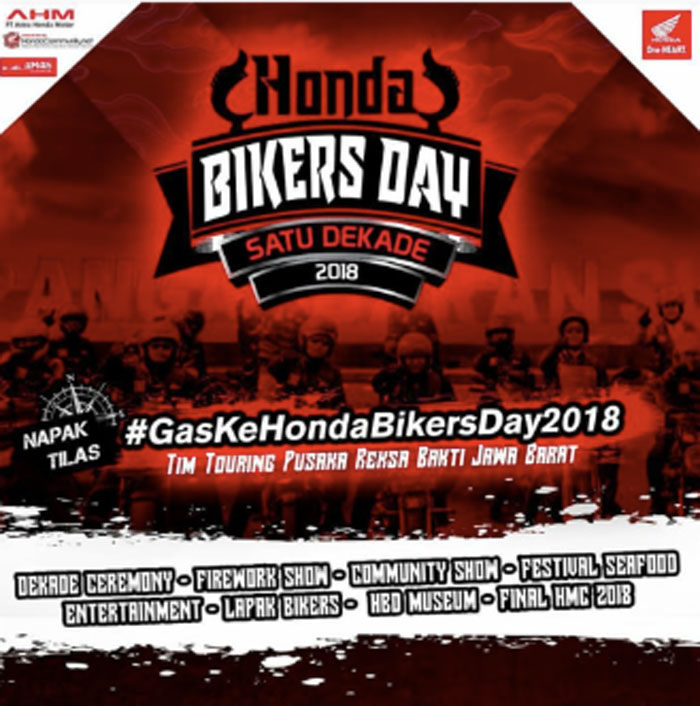 Salah satunya ialah kegiatan TOURING NAPAK TILAS #gaskehondabikersday2018 dari Brader Ikatan Motor Honda Jawa Barat yang didukung penuh oleh @alwayshonda PT Daya Adicipta Mustika main Dealer area Jawa Barat.