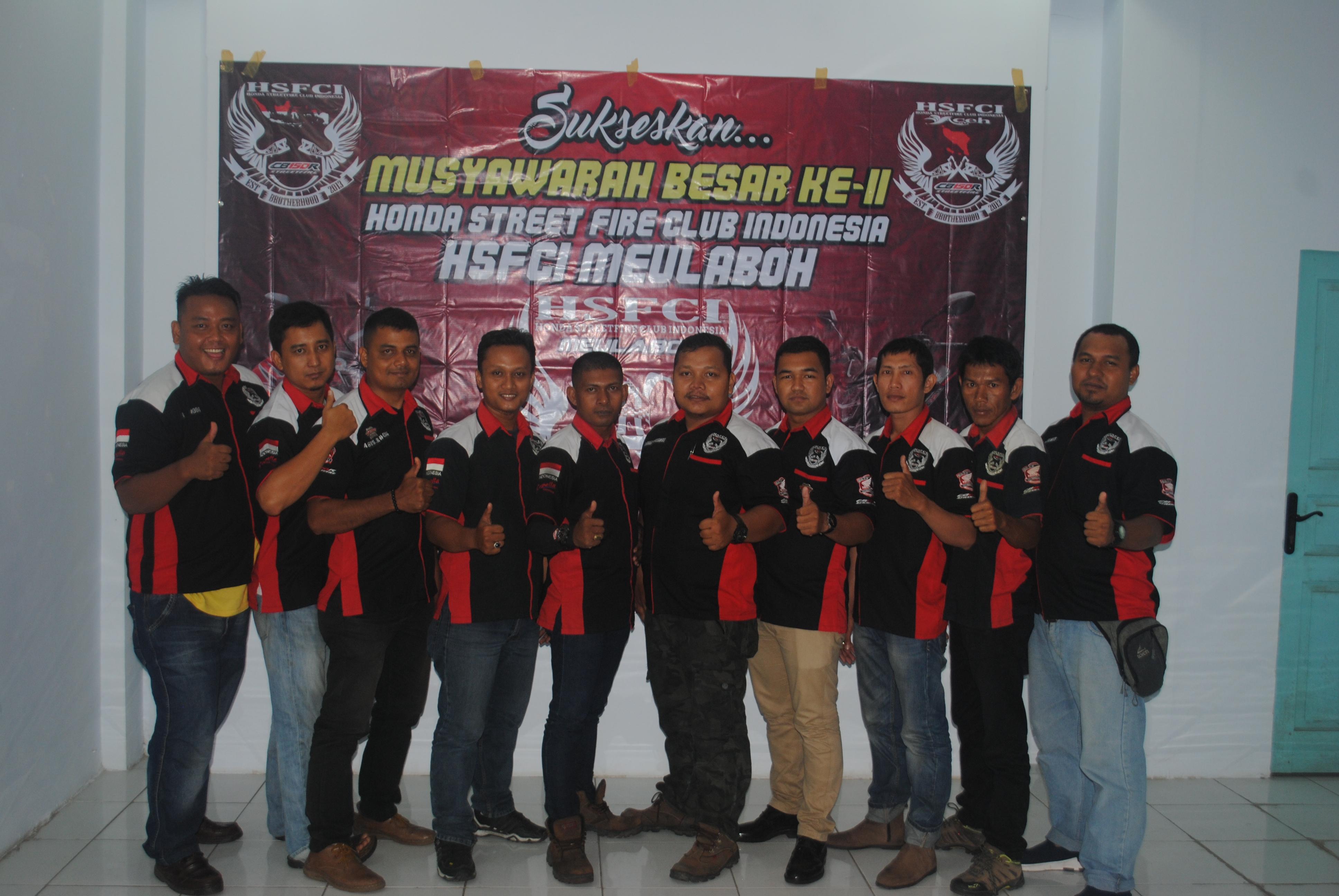 Honda Street Fire Club Indonesia ( HSFCI ) Meulaboh mengadakan Musyawarah Besar (MUBES) ke-2 untuk melaporkan pertanggungjawaban kinerja berakhirnya kepengurusan sekaligus memilih ketua baru Honda Street Fire Club Indonesia ( HSFCI ) Meulaboh periode 2018-2019 kegiatan MUBES berlangsung pada tanggal 30 September 2018 di AULA PT. Capella Dinamik Nusantara Perwakilan Meulaboh.