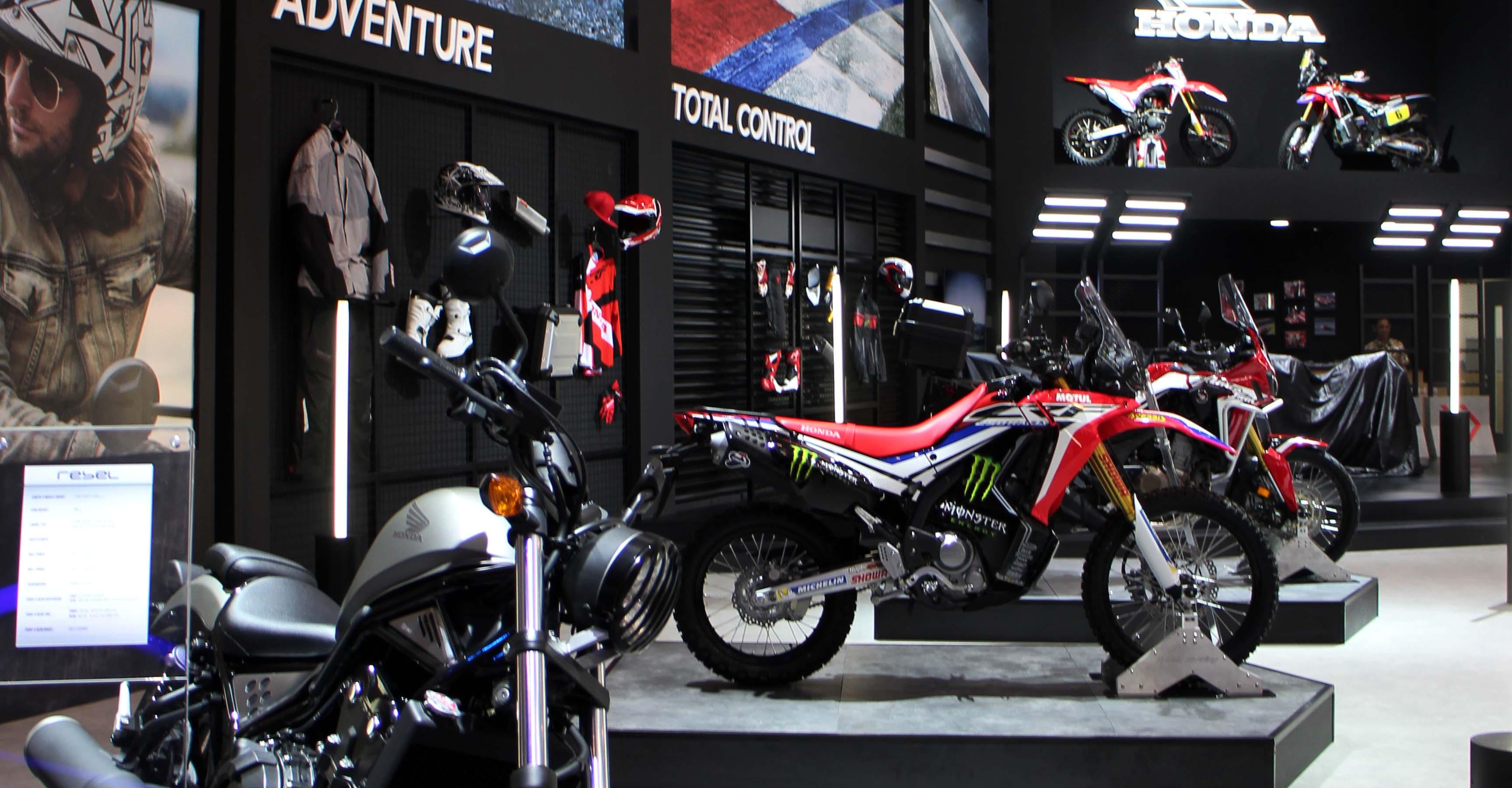 Menempati lokasi strategis di Hall 10A ICE BSD City, Tangerang, AHM menyuguhkan tiga zona display sepeda motor premium yaitu zona Total Control, Adventure, dan Lifestyle. Untuk dapat semakin luas berinteraksi dengan pengunjung GIIAS, AHM turut membuka booth di area Foyer Hall 10A ICE yang memajang beragam aksesoris dan apparel premium Honda. Bagi konsumen yang ingin mencoba performa motor premium dan big bike Honda, dapat mengunjungi area test ride di depan Hall 3 ICE.