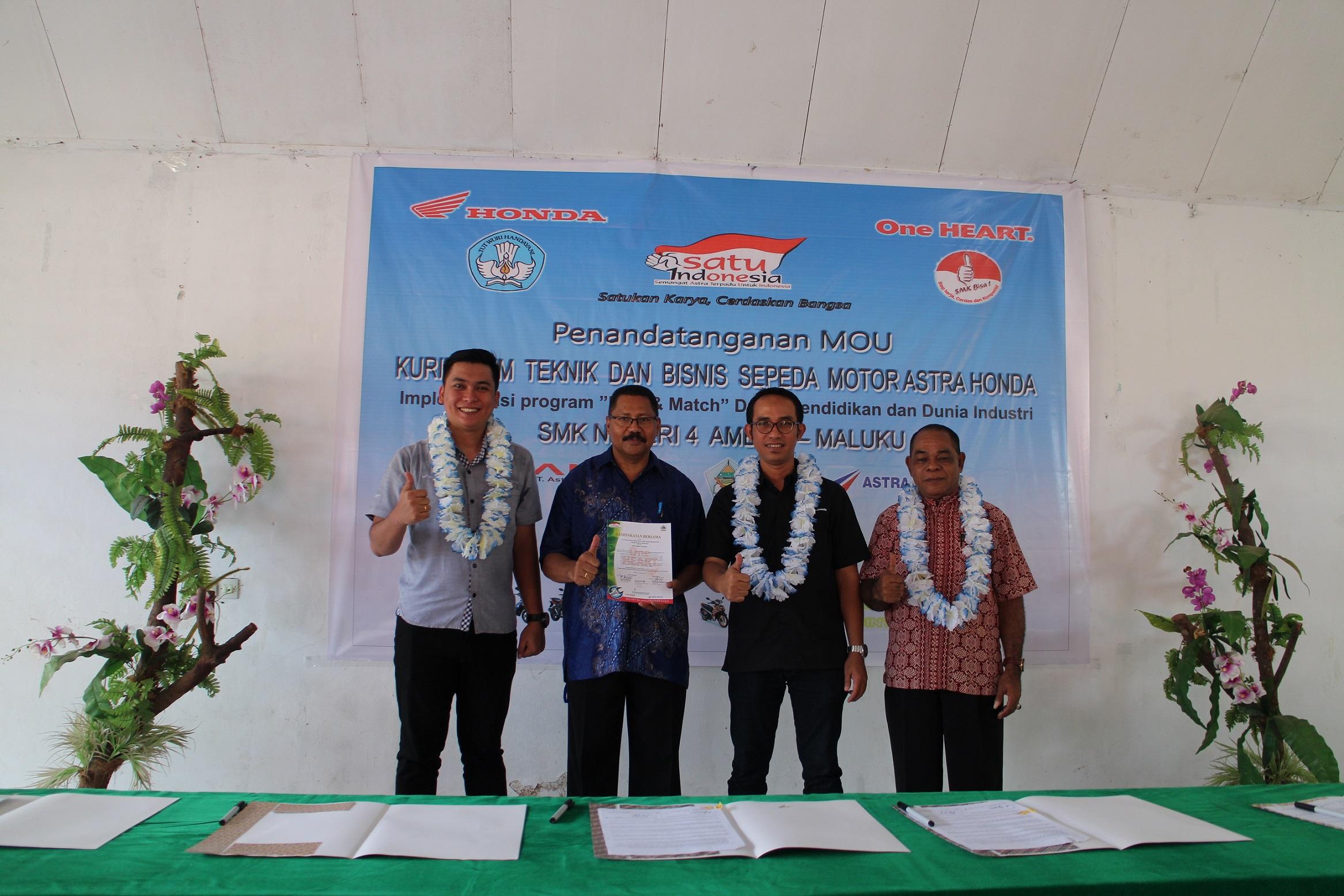 Implementasi Kurikulum TBSM Astra Honda diawali dengan penandatanganan nota kesepahaman antara AHM, Astra Motor Makassar, dan SMK Negeri 4 Ambon yang disaksikan oleh jajaran pejabat di Kantor Dinas Pendidikan dan Kebudayaan Provinsi Maluku. Acara ini berlangsung di aula SMK Negeri 4 Ambon pada Sabtu (27/01) yang diikuti dengan penyerahan donasi sepeda motor Honda dan seperangkat special tools dari AHM.