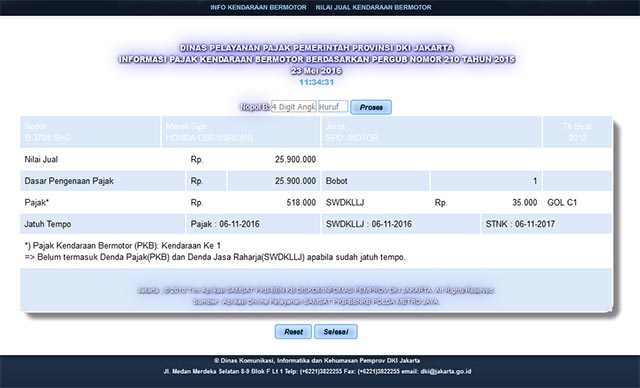 Semua data mengenai PKB dan tanggal jatuh tempo dapat dilihat. Di kolom itu juga terdapat Dasar Pengenaan Pajak, maksudnya taksiran harga motor atau kendaraan bro/sis menurut pemerintah yang menjadi dasar penentuan besaran pajak.